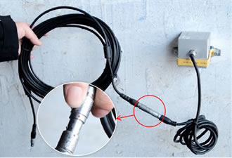 第二步:传感器连接电缆延长线(红点对红点连接)