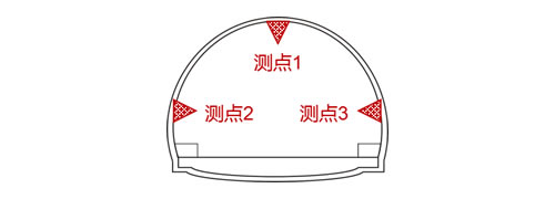 3个传感器按要求布置于顶拱与两侧壁,同时监测3个测点