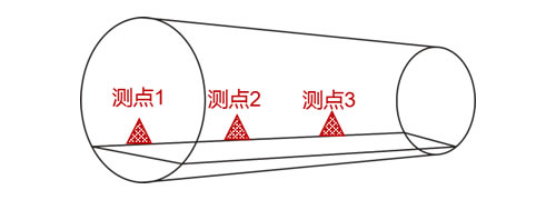 中间测点为中心,向左右两个方向分别布置两个测点,实现3个测点同时监测