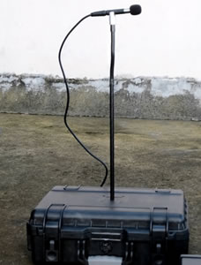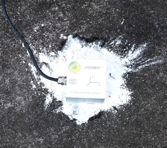 石灰膏稀释固定振动传感器(水平放置,X向指向爆源),手拧噪声传感器支架于手提箱上,固定噪声传感器。